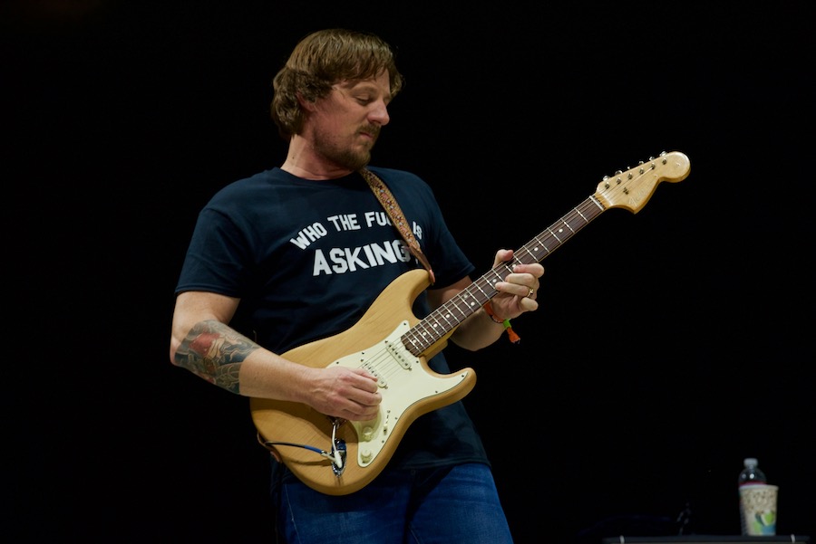 Wearing tinted glasses and a leisure suit with a front pocket overstuffed with $2 bills, Fritz spun various tales of misadventure throughout the night, including one about going on a Tinder double date with Robert Ellis in downtown Nashville. Another yarn involved his guitar-making father, who, in his previous career as a helicopter nurse, once arrived on the scene to treat a man who’d had his throat slashed in a case of mistaken identity. “Now, that’s a bad day,” Fritz quipped, speaking about the victim.